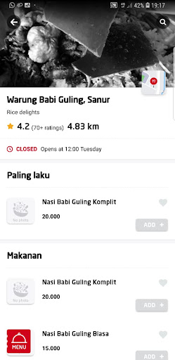 Read moreNot sure what the hype is about this place was charged 50k for the Babi guling. The pork skin wasnât crispy it was soft which let the whole dish down the whole dish was cold as well. I went to the toilet & saw the kitchen at the back & looked very unhygienic. My friend got sick after eating also. Iâve had cheaper & far better quality. The guy who served us was friendly though, thatâs probably the only thing that was good about this place unfortunately or maybe we came on an off day where the food wasnât good, either way I wonât be...