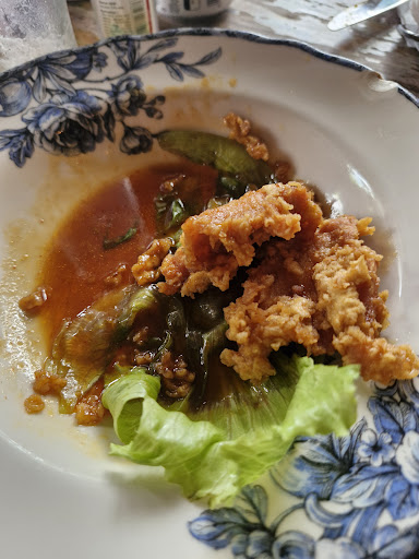 Read moreThis place is OK. The highlight is the silly guys that work there playing music and trying to sing. When we arrived they were playing a few songs I know, but unfortunately they did not seem to know the words. It was fun to listen to them none the less. One of the big problems is that it is very hot inside with little airflow, which makes it less that comfortable. I ordered the Ayam Goreng Lalpan, which came of course with the chicken with a local sauce over it, some white rice and some shredded cabbage with a peanut sauce on it. It was OK, but nothing I would order again. My wife had the Babi Kecap which came with the same shredded cabbage and white rice. The flavor was OK, but the pork was a bit tough. Overall we were not big fans of the food we ordered here. The service was pretty good. This is not a place I would be likely to come back to, but it is not bad, just not...