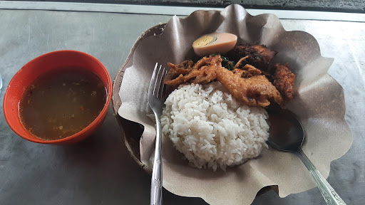 Rumah makan tradisional dengan menu sederhana nasi campur ayam Isi nya nasi + ayam panggang sisit +gonde + ikan garing 2bh + udang tepung 1bh + ayam goreng + sambel merah + kuah ares Termasuk hidden gem di tengah kota ya ini Worthed ya klau makan siang rame banget dan banyak yg pesan bungkus karena murah jg Bs makan di pinggir sungai jg Tp ad jg tmpt duduk untk makan di samping warung nya Kelupaan foto nasi nya karena ud lapar 😂😂 tp worth to try menu nya jd mirip sm gonde goyang semok 🙂 Di sekitar sini ad bebrp tmpt mkn Next aku mau coba...
