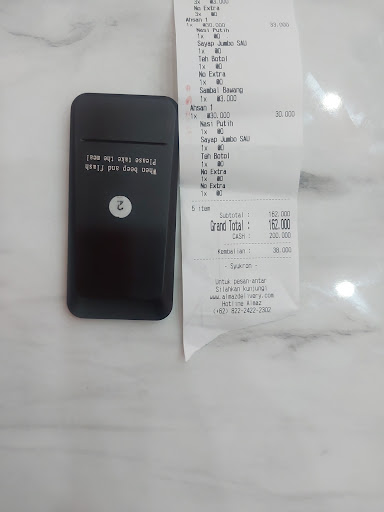 First time at Almaz. I got the Mumtaz 2 set for Rp50,000, it came with biryani rice, one big chicken wing (Saudi flavor), one drumstick (also Saudi), garlic sauce, a bottle of Teh Botol, and some sachets of tomato and chili sauce. Overall, it was tasty, filling, and satisfying.