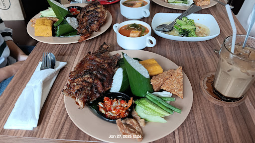 Read moreThe façade isn't quite inviting, but the inside is really cozy and has a good layout and view. The food was very tasty! I had a nasi timbel nila bakar; the rice was pulen, the tofu and tempe were fresh, the raw vegetables were fresh and clean, the sambal bawang was good, the sayur asem was tasty and refreshing, and the ikan bakar was big and yummy. The sautéed broccoli was delicious (the broccoli tasted fresh and had the right crispiness). The peppermint tea was nice (from dilmah), the cappuccino was good (and really hot!), and the aren latté was absolutely a winner! Thick, rich, creamy, and has a pleasant coffee flavor. They have a musholla, and I really appreciate that the wudhu spot for women is covered. Another thing I appreciate is when the adzan was pronounced, the music was turned off 👍🏼. Overall, this is a recommended place to dine and hang out. They give you a free sea salt latté for a google review, and it was seriously delicious! Again, the coffee flavor was really...