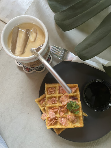 I ordered latte and classic waffle. The coffee is above average. The waffle with syrup was good yet it could be better if it wasn’t sprinkled with soggy sweet corn flakes.