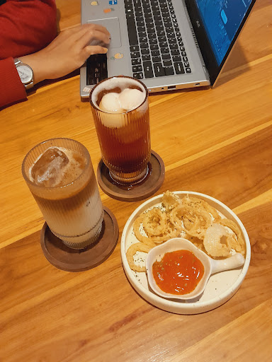 We ordered Tahu Cabe Garam, Onion Rings, Palm Sugar Coffee Milk, and Lychee Tea. The Tahu Cabe Garam was a bit greasy and not as crispy as expected, but still had a nice flavor. The Onion Rings were perfectly fried and delicious. The Palm Sugar Coffee Milk was just okay, nothing special, but the Lychee Tea was refreshing and light.