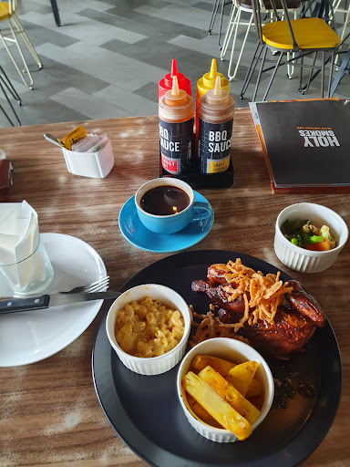 Read moreHoly Smokes, yang berlokasi di Jl. Kaliurang Km 5.7 No.23A, Yogyakarta, menawarkan suasana yang menarik bagi mereka yang mencari tempat berkumpul dan bersantap. Dengan desain interior modern yang didominasi warna gelap dan sentuhan artistik, tempat ini menciptakan suasana yang nyaman dan cocok untuk nongkrong bersama teman atau keluarga. Lampu-lampu gantung unik dengan aksen dedaunan hijau memberikan sentuhan alami yang menenangkan, sementara mural "Smoky Beef Brisket" di dinding menegaskan spesialisasi restoran ini. Terdapat pula meja foosball yang bisa menjadi hiburan tambahan, menambah keseruan suasana. Dalam hal lokasi dan suasana, Holy Smokes memang patut diacungi jempol, dan saya memberikan nilai sempurna 5/5 untuk aspek ini. Pelayanan di Holy Smokes juga patut diacungi jempol. Stafnya ramah dan responsif, siap membantu pelanggan dengan senyum. Proses pemesanan hingga penyajian makanan berjalan dengan efisien. Pelayan terlihat sigap dalam melayani setiap kebutuhan pelanggan, menciptakan pengalaman bersantap yang menyenangkan dari awal hingga akhir. Untuk pelayanan, saya juga memberikan nilai sempurna 5/5. Namun, pengalaman kuliner saya di Holy Smokes sedikit kurang memuaskan, terutama pada kualitas makanannya. Saya memesan Sirloin Steak 220 gr dan Brisket Fatty 120 gr. Harga yang tertera pada struk adalah Rp 159.000 untuk Sirloin dan Rp 99.000 untuk Brisket, dengan total tagihan Rp 354.008 setelah pajak dan biaya layanan. Harapan saya terhadap hidangan smoke beef yang otentik cukup tinggi, mengingat nama "Holy Smokes" itu sendiri. Namun, ketika hidangan disajikan, saya merasa aroma smoke yang diharapkan kurang terasa. Daging sirloin, meskipun dimasak dengan tingkat kematangan medium seperti yang diminta, terasa sedikit "bau" yang kurang sedap di lidah saya. Hal ini cukup mengecewakan, karena rasa smoky dan kualitas daging adalah esensi utama dari hidangan seperti ini. Brisket juga tidak sepenuhnya memenuhi ekspektasi. Meskipun disajikan dengan crispy onion yang renyah, rasa dagingnya tidak seistimewa yang saya bayangkan. Seharusnya, daging brisket yang diasap memiliki karakteristik rasa dan aroma yang khas, namun hal tersebut kurang menonjol. Saya tidak yakin apakah ini karena selera pribadi saya yang berbeda atau memang ada masalah dalam proses pengolahan daging pada kunjungan saya. Namun, sebagai penikmat smoke beef, saya merasa kualitas daging dan tingkat smoke yang kurang dominan sangat memengaruhi pengalaman bersantap saya. Oleh karena itu, untuk kualitas makanan, saya hanya bisa memberikan nilai 2/5. Saya berharap manajemen Holy Smokes dapat lebih mengontrol kualitas daging dan proses smoking mereka. Dengan suasana yang sudah sangat mendukung dan pelayanan yang prima, akan sangat disayangkan jika kualitas makanan tidak sebanding. Mengingat harga yang tidak bisa dibilang murah, ekspektasi pelanggan terhadap kualitas rasa tentu akan...