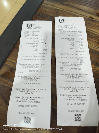 Read moreKaryawan pria yg alis nya model putus2 mending di cut deh,, 1.Sewaktu menawarkan CD ketika customer terlihat tidak minat langsung pasang wajah meledek,, 2.Sudah order dada mentok utk suapin anak kecil malah dikasih dada tulang,padahal sudah 3x di notice 3.Krn takut anak sy tersedak tulang akhirnya sy minta tukar dan dia malah bilang "HARUSNYA TADI MINTA DADA MENTOK !!!" dengan nada menantang dan malah mau dikasih dada pedas padahal sebelumnya sudah dikasih tau "UNTUK ANAK KECIL" Untuk Management KFC ITC depok mohon utk ditindak karyawan sperti ini ,krn membuat pembeli jadi malas datang lg dan pasti merugikan utk KFC ITC Depok,,bukan sy sj yg mereview jelek ,bisa dilihat dari rating KFC ITC Depok yg kurang bagus krn pelayanan...