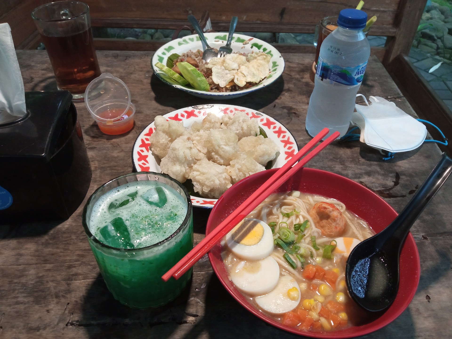 Saya merekomendasikan menu : Pempek kapal selam, rasa ikannya berasa, empuk dan kuah cukonya yg enak walau tidak sestrong cuko asli palembang (9/10)🤤 Honey chicken wings, rasa ayam yg manis madu membuat saya ingin makan dengan nasi hangat (9/10) Ramen spesial level 4, kuah kental pedas dan asin dengan toping ayam, crabstick, dan kepiting. (8.5/10) Nasgor kecombrang dan nasgor kambing (8/10) Cireng dengan sambal rujak (8/10) Tempe mendoan dengan sambal kecap (8/10) Bluberi krim + float / Stroberi krim + float, rasa manis yg pas dari selai bluberi/stroberi dengan krimer ditambah eskrim float di atasnya (9.5/10)😍 Vietnam drip. Pahit kopi dan manis susu kentalnya enaa (8.5/10) Teh sereh. Enak buat hangatin badan dikala cuaca dingin (8.5/10)