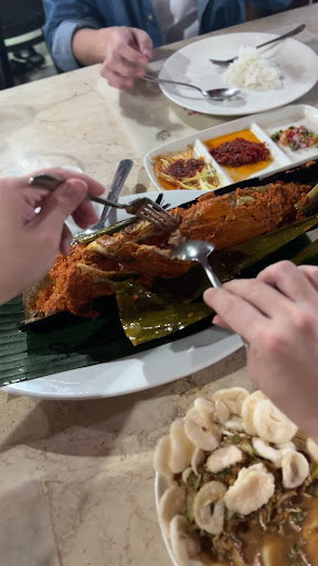 Read moreopen at 11am but expect a full house by 1130...yes it's packed with little room to squeeze in...place is a dilapidated house with much needed home improvement, can get very stuffy and hot on a sunny day, wear t-shirts and shorts...parking is atrocious but can still manage to get in and out of the place...customers advised to order their food while waiting for their table...don't expect quick service..ratio is 1 waiter : 20 customers... the ikan bakar patin bambu is the specialty of the house...tasty seasoning all over but not spicy...you have the sambels for that...we ordered other dishes: ikan goreng gurame, sayur asem, udang goreng, karedok - standard fare... you have to eat what you came here for... the jeruk kelapa and kelapa muda is a must...after you had your fill, line up at the cashier for 10-15 minutes to pay your dues...with all this, a return...