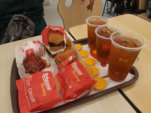 Read moreMantap semua nya, fire chicken dan burger nya mantul pedas nya padahal level 3 tapi rasa nya sampai pedes perih dilidah heheee... Rasa minuman pink lava nya kurang oke. Over all oke semua nya Hanya saja saat pulang melewati drive thru tiba² dipriit sama 2 orang, 1 tua 1 muda. Heran nya mereka tidak ber seragam dan mungkin apakah saya baru tau kalau di richeese ada kang parkir nya, mohon dikoreksi maaf kalau salah. Bukan kenapa² sih cuma kaget aja kok kayak kang parkir gadungan, apakah sudah ada ijin dr pihak richeese nya tp tetep saya beri uang parkir. Mungkin dr pihak richeese bisa memperhatikan lagi kedepan nya untuk kenyamanan pelanggan saat melihat tukang parkir tidak berseragam, kalau memang ada kang parkirnya bisa diberi seragam parkir biar kelihatan lebih rapi dan pelanggan...