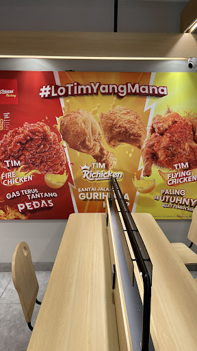 Dari luar, bangunannya cukup mencolok dengan warna merah khas Richeese, ada area parkir yang cukup luas untuk motor dan mobil. Begitu masuk, suasananya nyaman dan modern, cocok buat nongkrong, kerja laptop, atau makan bareng keluarga.