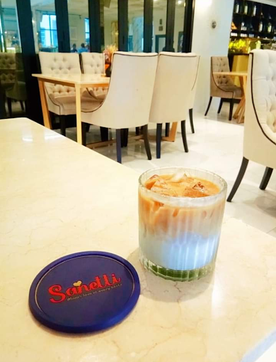 Read moreSanetti menjadi satu dari sedikit kafe mewah di Depok. Berlokasi jauh dari Margonda, mereka memilih menghuni sebuah bangunan klasik di daerah GDC (Grand Depok City). Kesan megah langsung terlihat dari bentuk bangunan utama dengan pilar-pilar tingginya. Tak hanya restoran, Sanetti pun menawarkan ragam pilihan gaya hidup lainnya seperti klinik dan beauty care. Seluruh area bawah merupakan seating table dari restoran. Bergaya fancy, meja kursi dibuat semewah mungkin dengan kesan mahal yang kentara. Tak banyak sekat pada ruang, supaya suasana terasa lega. Sisi kiri terdapat mini stage yang kadang menampilkan live music. Sisi kanan terdapat barista area yang bersebrangan dengan kasir merangkap meja display tempat memajang beberapa roti, kue dan gelato.