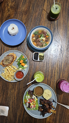 Kayaknya sih baru buka, soalnya baru lihat (lama ga di Jogja), dan masih ada karangan bunga soft dan grand opening gitu. Dan pertama kali juga ke sini. Tempatnya besar dan nyaman. Stafnya ramah, cuma sayang, ga semua staf tahu jenis makanannya apa. Pas saya tanya ke salah satu staf, dia kelihatan bingung gitu, kayak ga tahu itu apa, dan malah jawab ngasal. Sebenarnya kalo bilang ga tahu aj juga gpp, malah ga menyesatkan. Cuma herannya, biasanya staf itu tahu jenis2 makanan, bahkan mungkin malah bisa rekomendasi. Paling tidak sebelum terjun ke lapangan mereka dikasih tahu jenis makanan yg disediakan apa saja. Tapi ya sudahlah, endingnya googling karena penasaran, dan terjawab juga oleh google, meskipun mungkin di situ bukan seperti yg di google. 😅 Minuman yg saya pesen biasa aja, ga terlalu spesial, saya lupa pesen less ice. Ga pesen appetizer. Main course, saya pesen salmon, dan sedang ada promo buy one get one, jadi pesen salmon 2. Ga tahu sih dengan kebijakan resto, karena ga pesen steak, jadi ga tahu apakah ditanya tingkat kematangan atau ga, tapi yg jelas untuk salmon ga ditanya tingkat kematangannya. Dan saya lebih suka untuk salmon tingkat kematangannya medium. Mungkin kalo di Indonesia, untuk salmon memang ga biasa ditanyakan. Dan saya juga sengaja ga ngomong, karena pengen tahu gimana chef-nya mau bikin, cuma memang sudah menduga bakal welldone sih. Saus jamurnya uenak banget, bener2 rekomended ini saos (mungkin saos yg lain enak juga, tapi sayangnya cuma pesen saos jamur). Potato wedges biasanya asin, ini pas ga terlalu asin, dan tingkat kematangannya juga pas. Dan mix vegetable mungkin ga semua orang suka, karena setengah mateng, tapi saya suka2 aja dengan veggie yg ga terlalu matang. Sebenarnya pesen dessert juga, tapi lupa foto, well untuk es krim saya pilih yg kacang hijau, dan enak, tekstur lembut dan tingkat kemanisannya pas. Pas mau bayar, mungkin karena baru, ga terima kartu. Untung terima q-ris, suka males keluarin cash kalo makan di restoran. Overall, puas sih makan di sini, ada kemungkinan balik lagi karena memang lokasi deket, dan pengen...
