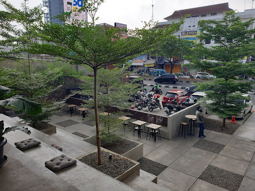 Read moreDesigned with an industrial theme, the cafe is located at Margonda Raya street, the main road of Depok. It will be on your left side if you come from Jakarta and so big that you won't miss it. Combining indoor rooms with air conditioners and open-air spaces on two levels, the cafe is a perfect spot for hanging out with friends as well as for studying or working. The selection of food and beverages are quite interesting, with Western and Indonesian menu. The price is quite affordable, as it serves university students in Depok city. The parking lot is quite narrow though, so you need to be careful.