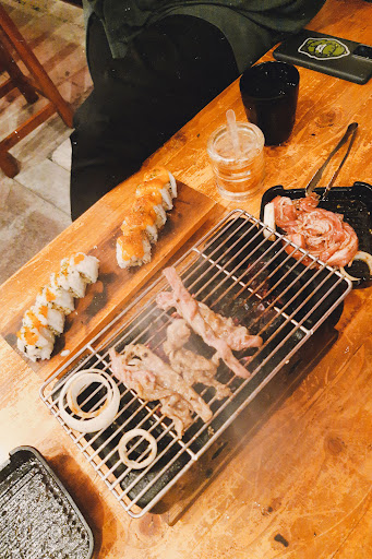 Read moreTried one of the cheap sushi dining recommendations. The concept is identical to the street Japanese vibe, from the furniture itself to the playlist and other ornaments. Dominant outdoor place with parking space that is not too wide. Fast and friendly service. Here is a menu of sushi and grill. We ordered sushi california sushi and hot spicy karage roll (not spicy at all), we also ordered beef grill. The sushi is delicious and the texture is soft. For the beef grill, the meat is delicious with barbecue sauce and fresh. The quality and price match the taste. The drink we ordered ocha which can be refilled as much as we like. However, there are some important things to note, yesterday we found moldy chili powder on our table, luckily the waiter was quick to replace it. I hope something like that doesn't happen again. But i like it, i...