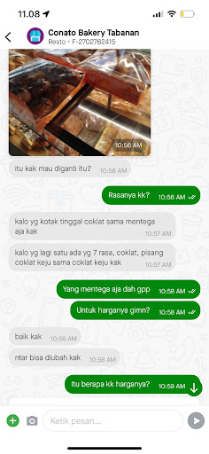 Untung selama beli berkali2 diconato cabang tabanan ini roti yg aku beli/konsumsi aman tidak berjamur atau kadaluarsa,tapi memang banyak yg harus diperbaiki dioutlet cabang tabanan ini seperti staff yg menyapa,ramah dan komunikatif saat customer datang sigap untuk mengecek nampan yg harusnya sll ready dan bs diambil customer2 yg sedang memilih roti kalau bagian pelayan 1 dan kasir 1 gampang 1 fokus kecustomer dan membantu jika diperlukan dan 1 kasir hanya fokus disitu saja,dari review yg aku baca banyak masukan harusnya lebih banyak bebenah agar conato cabang disini semakin diminati karena cabang lain memang betul tempat bersih pelayanan ramah dan juga jenis roti yg banyak pilihan.semoga kepala cabang disini ataupun penanggung jawab ntah apapun itu bisa berusaha lebih keras lagi untuk membangun citra conato cabang tabanan...