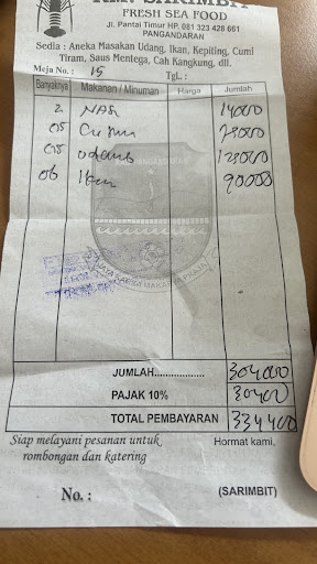 Read moreRumah Makan Sarimbit menyediakan aneka olahan seafood. Lokasinya mudah ditemukan, tepat dipinggir pantai timur. Tempat parkir luas. Cara pesan makanan bisa memilih dulu aneka ikan segar didepan. Bisanya hitungannya adalah perkilo jadi akan ditimbang dulu. Kemudian bisa dimasak sesuai selera, ada ikan bakar (ada berbagai jenis ikan laut misalnya kakap, kue, kerapu dll), udang goreng tepung, udang saus tiram, udang saus padang, udang asam manis, cumi goreng tepung, cumi saus tiram, cumi saus padang, cumi asam manis, udang bakar, kepiting saus tiram, kepiting asam manis, kepiting saus padang, cah kangkung, kerang simping asam manis atau saus padang. Untuk harga lumayan mahal, mungkin karena lokasinya merupakan tempat wisata dan berada tepat dipinggir pantai timur. Kebersihan cukup baik. Pada saat saya kesini juga pelayanan cukup cepat tidak lama menunggu mungkin karena karyawannya sangat banyak. Buka mulai siang sampai malam hari. Pembayaran hanya melayani tunai, agak ribet dan kurang canggih, sebaiknya bisa pakai debet atau QRis karena orang makan disini pasti habisnya banyak. Ohya disini tidak...