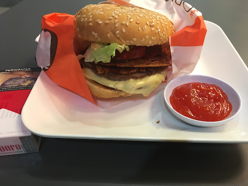 kemarin nih mampir kesini karena mumpung ada diskon dari shopee 60% iseng2lah ane mampir sekalian cobain lah gimana makanannya si A&W ini oiyah sebelumnya aku sama sekali gak pernah makan di A&W loh ya gaes karena dari tampilan restonya aja gak meyakinkan sih jadi gak pernah sama sekali mampir kesini sekalinya mampir eh di bikin "kapok" pelayanan nya kurang ramah banget di karyawan yg jaga casher saat pilih menu si karyawan bilang kalo minuman rootbeer nya bisa di ganti minumam lain, eh tapi doi gak bilang kalau kena cash lagi donk ππ»ππ» mantaaap lah pas makan burger nih untungnya ane sempet buka isianya buat pisahin sayuranya eh nemu plastik bungkus keju yang masih nempel ππ» tau gitu ane pesen air tawar aja sumpah, ini dapat "ganti" minum coklat tapi berasa air tawar ππ»