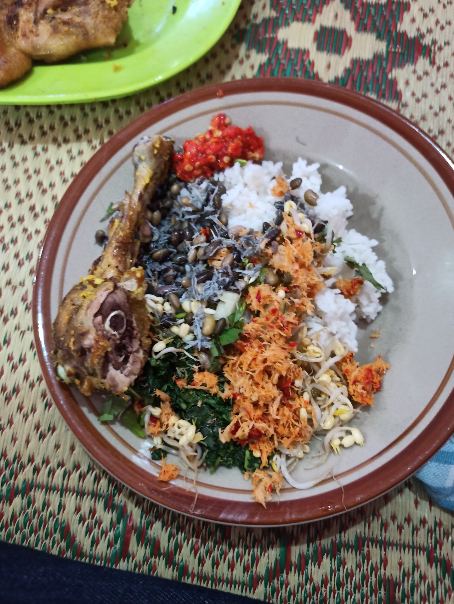 Makan 1 ekor ayam tapi ga habis? Jangan khawatir karena kita bisa membungkusnya untuk dibawa pulang dan selain itu juga akan ditambahkan urap dan sambal yang baru lagi berbeda dengan yang disajikan di awal.