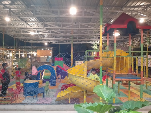 Di depan kursi tempat makan, berhadapan langsung dengan playground. Anak2 bebas bermain dengan membayar tiket 10.000 di kasir, berlaku selama 3 jam.
