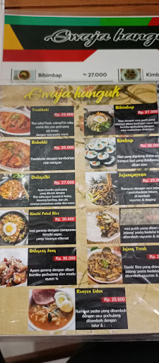 Ā Ā Ā Read moreKemarin pas aku lewat kebetulan gawaja hanguk buka yawdh aku beli kimbap sama rabokki minumnya dalgona coffe latte kata aku ssih dalgona ny kepaitan atau emng rasny gitu mungkin kalo kimbap rasanya enk enk aja sama rabokki ny bumbunya enk aku mesen rabboki nya yang level 1 tp udh pedes bgt tapi enk untuk tempat nya lmyn bgs kok...