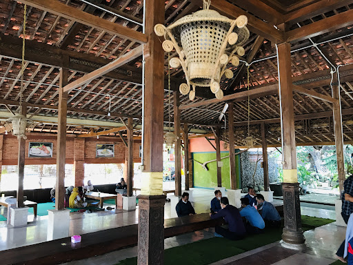 Fasilitas: Suka sama fasilitasnya. Mushola yg terbuka. Tempat foto yang menarik dan klasik. Tempat cuci tangan yg unik dan natural. Tempat makan semua lesehan dengan meja kayu yang super duper panjang. Di setiap 2 meja terdapat wastafel dari batu yg cukup menarik.