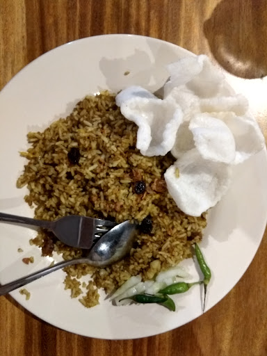 Read moreMungkin di Banyuwangi satu-satunya warung dengan menu nasi goreng kebuli. Ada kebuli kambing, sapi dan ayam. Menu nasi goreng lainnya pun ada. Nasi goreng biasa dan nasi goreng mawut. Selain nasi goreng juga tersedia mie goreng. Ada mie goreng Aceh dan juga mie goreng biasa. Minuman juga bervariasi macamnya. Cuman sayang klo orang belum pernah ke sini terkesan warung ini tutup, karena rombongnya tertutup oleh daftar menunya. Tidak ada petunjuk klo warung ini tutup ato buka juga. Tapi dari rasa, kesimpulannya adalah...