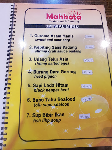 Read moreOk nyoba dsini.. Alhamdulillah tempat nyaman, cocok buat keluarga. Saran sya kalau nasgor psen yang selain Mahkota aja. Untuk udangnya Sip kya make udang Windu bukan Vanamie. Guraminya juga gede Cuman pigeonnya keknya over price Makanan diatas yg sya coba Untuk minuman CAPUCINONYA KOK MAKE KYA SACHETAN .. pdhl 12rb wkwk. sya langganan sini .. cuman kadang cocok kadang engga. Kebanyakan koki atau gmn ya? Hmm Semoga terus ditingkatin mengingat Resto yang lumayan harganya.. pelayan kurang ok.. kebanyakan ngobrol sendiri kasirnya Wifinya ga begitu Konek pdhl...