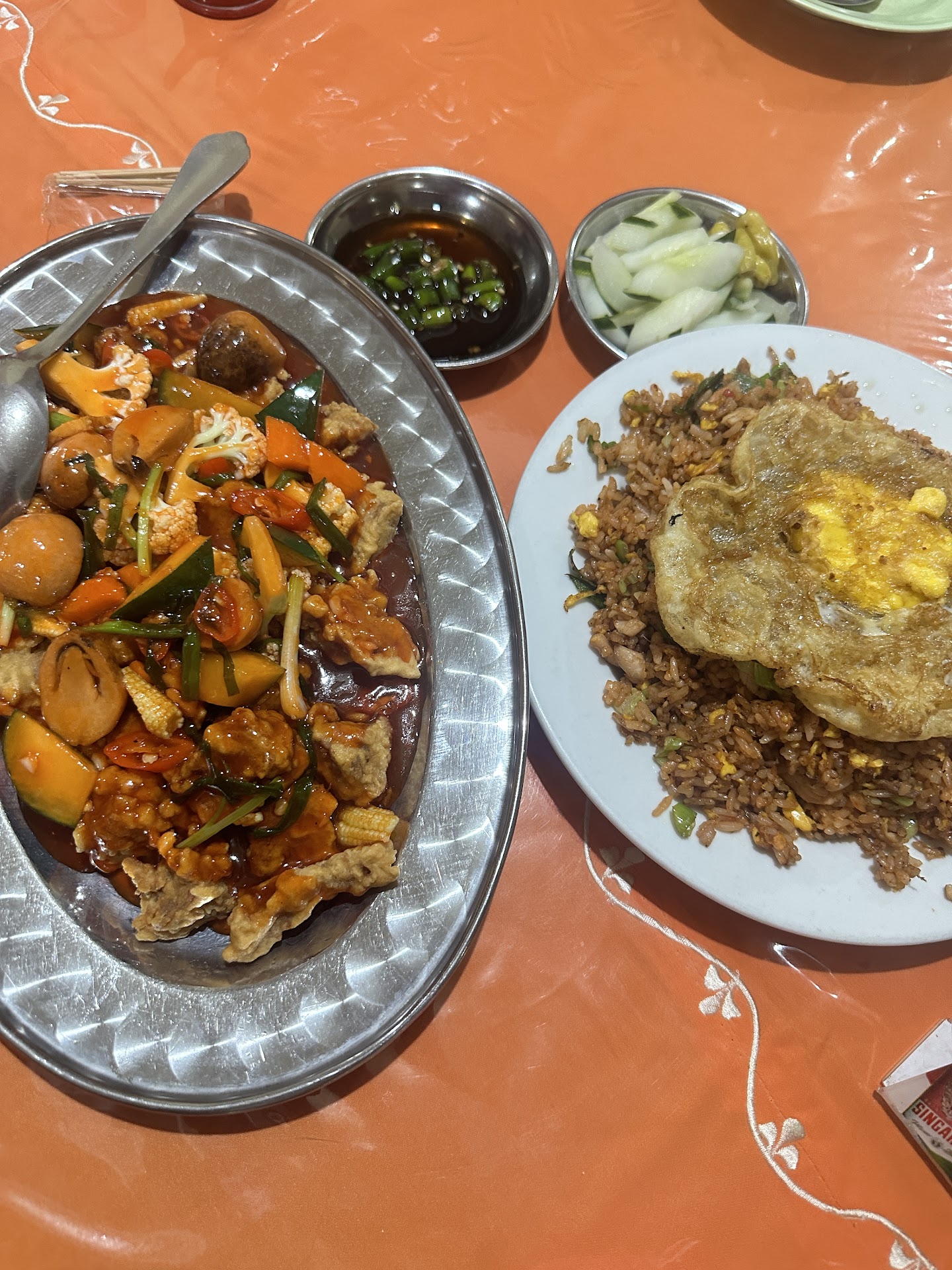Kolobak 80k Bihun Goreng Daging Kepiting 55k Angsio tahu 90k Angsio hisun (bibir ikan) 120k Hiwan kuah 7k/pcs Nasi goreng babi 40k Nasi putih 10k Ote-ote 22.727