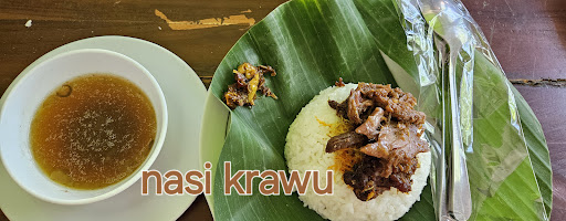 Ā Ā Ā Read moreTerus terang, saya bukan penggemar nasi krawu, jadi saya tidak tahu juga nasi krawu itu seharusnya yang bagaimana. Kesan pertama ketika sampai di tempat ini adalah bahwa parkirnya tidak nyaman, saya tidak bisa membayangkan parkir dimana saat peak hour. Selisih beberapa rumah dari situ, ada 2 tempat kuliner yang patungan menyediakan lahan parkir di dalam, saya tidak mengerti kenapa nasi krawu ini tidak menggunakan lahan parkir yang lebih luas tersebut. Tukang parkirnya adalah tipe yang tidak muncul saat kita parkir, namun selalu sigap ketika kita hendak berangkat. Ruangan dalamnya biasa saja, ada beberapa meja yang tersedia. Saat makanannya keluar, satu hal yang menarik adalah bahwa mereka menghidangkan kuah sebagai bagian dari menu nasi krawu. Selama ini saya berpikir bahwa nasi krawu adalah nasi keringan, jadi tambahan kuah ini adalah kejutan yang menyenangkan bagi saya. Rasa kuahnya sedap, sekalipun tidak panas sama sekali. Untuk menu utama, rasa lauknya cukup enak dan empuk. Sekali lagi, saya tidak mengerti bagaimana nasi krawu itu seharusnya. Apakah saya akan kembali lagi? Sekalipun menurut saya nasi krawu disini cukup enak, tapi sebagai non warga gresik yang jarang ke gresik, saya lbh prefer makan bandeng goreng kalau saya sedang berada di gresik. PS: 2 bintang hilang karena masalah parkir dan kuah yang...