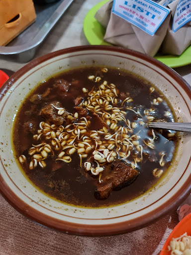 Rawon is a renowned food in the Java island. It's basically a black soup of beef that had been boiled overnight, added with some soybean sprout and other local spices.