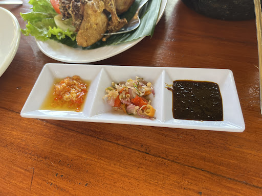 Read moreRM Handayani was gorgeous! They had an indoor eating setup and also several thatched stilt houses in the water which can contain up to 6 or even 8 people if you decide to squeeze in. The ambience can only be described as extremely calming; they played soft music with traditional Javanese tones and had the most welcoming staff to go along with it. Each house had its own washing bowl and soap so you didn't have to go far to search for that. The toilets were also clean and pleasant to use.