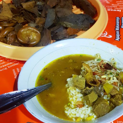 Pertama masuk kirain ini warung yg legend di suatu daerah, ya mungkin aja c, tapi tempatnya agak kotor, panas banget di dalem, banyak sampah plastik krupuk berserakan di lantai blm dibersihkan dan makanannya kurang memuaskan buat saya. Jangan salah, kuah sotonya enak banget, soto daging tanpa santan, yg bikin saya bilang kurang memuaskan tu porsi topingnya, dikiiiit banget, porsi nasinya ok lah, kuahnya juga dikasi banyak, tapi ya itu, isiannya dikit banget, udah dikit dipotong kecil² lgi, jadi pas makan tu ga berasa nggigit daging sama sekali. Ada c toping tambahan kalo mau, disediakan di masing² meja tinggal ambil aja, ada limpa, paru, usus, babat, hati, penggemar jeroan sapi pasti suka. Bisa juga pesen custom "jeroan tok mas" tapi ya gtu tetep default topingnya tu dikiit, harus ngambil toping tambahan yg di meja. Terlepas dari itu semua, sotonya enak topping jeroan yg dimeja juga dimasak dengan baik, ga ada bau² amis atau aneh lainnya, empuk sedap. Kuah sotonya the best, dan harus Siap² senam jantung, karena bisa aja pas lgi enak makan tiba² ada suara "gebraaak" dari mas...