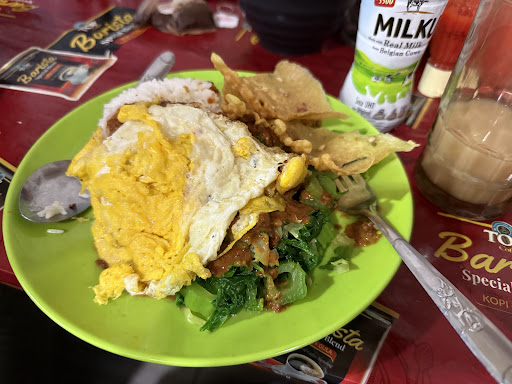 Read moreWe tried this place as the recommendation of the hostel where we stayed. The woman was very nice and compromized to cook something as we want. We really wanted to have some vegetables what difficult to find for the last 10 days travelling in Indonesia. So we were so happy when she said she has sate spinach today😆The soup is salty for me btw. Other...