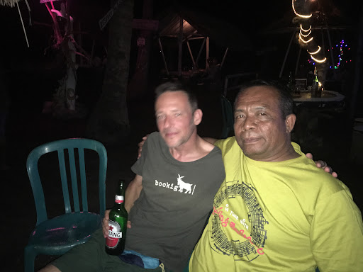 We are very happy to have found on our way this bar with beautiful people. We were staying close by and we did not miss a night or a concert. Dodot( Bob Marley) is a nice soul and the same is for his family: Benny ( Blue Manta), Ady, Firmin... we did not stop laughing and dancing with them. Dodot will help with anything you need. We did not make activities with him but he knows the island like his pockets and he can show you Nemo!!! Their music and band is amazing. We had also fish the first night and it was delicious. You can choose what you want from a box and they will tell you the price. Their Bintang...