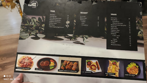 Untuk menu sendiri lebih ke western food, antara lain:: LED Heal LED Breakfast LED Cassava Nasi Gila Mie Gila Kuah Fried Noodle Chicken Steak Beef Steak American Resoles Onion Ring Banana Chocolate Spring Roll Banana Split dll.