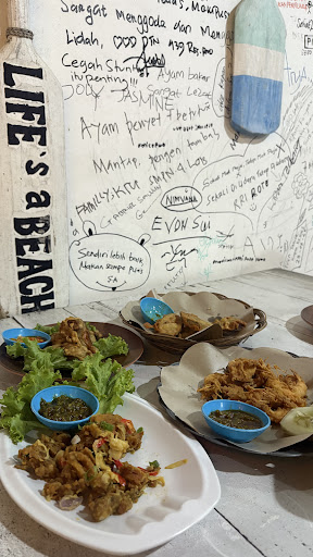 Read moreTempatnya agak masuk dari jalan besar. Sederhana di kebun rumah. Menu banyak tapi stok terbatas. Enak semua. Kami pesan kuah asam kakap merah, kerang saus padang, kerang bakar, ayam goreng. Ayamnya empuk dan gurih. Ca kangkung, pete goreng, ikan asin goreng. Yg kurang ok salmon goreng doang. Gak ada menu babi. Kalo rombongan, better telp dulu. Doggie-nya baik2. Tdk galak dan ganggu org. Aman utk muslim. Makanan di sini the best sih...