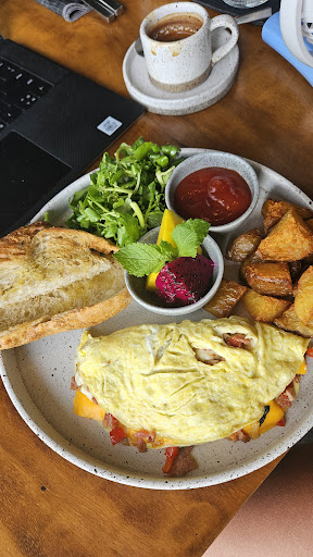 For example, the burger patty was extremely dry and overcooked, and so disproportionatly hot inside (to the point of burning me) that it must have been microwaved at some point in the process. The cheese in the omelet was like plastic and barely melted. (The potatoes/ fries with breakfast were quite tasty, and hit a spot.) My espresso was ok, but not amazing.