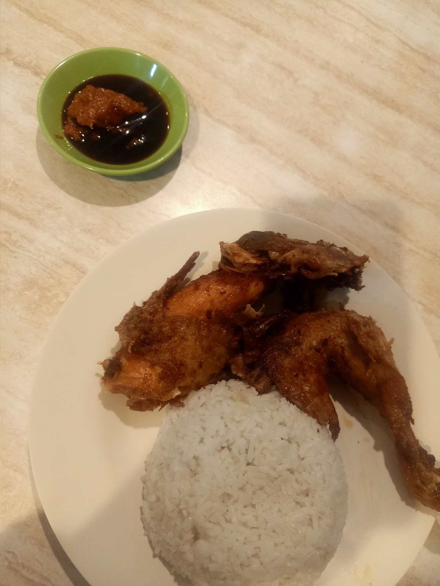 Read morePertama makan di tempat ini. Kesan pertama nya adalah tempat parkir yang tidak terlalu luas. Ayam nya tidak terlalu besar, saya kira ayam goreng jumbo itu bakal banyak dagingnya, dan terlihat besar, tapi ternyata begitu makanan datang kecewa saya melihat bentuk ayamnya yang kecil dan tidak banyak dagingnya. Melihat sambal nya kurang menarik juga. Begitu mulai makan, nasinya keras sekali. Untuk rasa ayam nya lumayan lah, tapi untuk sambalnya kurang berasa. Untuk minumannya lumayan rasanya. Karena tadi saya nambah plecing kangkung, jadi saya juga harus kasih ulasan tentang plecing kangkung. Pertama datang pesanan saya yg plecing kangkung, terlihat menggiurkan pas lihat ada sambal mentah diatas tumis kangkung nya, tapi begitu dirasakan, sambalnya kurang mantab, dan tumis kangkung kurang ada rasanya, dan karena saya tidak terlalu suka dengan Batang kangkung nya, jadi saya sarankan untuk kangkung bisa dipotong lagi. Oiya ada saran lagi untuk para pegawai nya, kalau bisa pegawai memakai seragam kerja, jadi biar bisa dibedakan mana pengunjung dan mana pegawai 🙏 Mungkin itu saja ulasan saya, mohon maaf apabila ada kata" sayang...