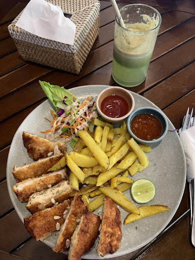 Read moreTried this coffee shop at Gili T for the first time. I ordered Gili Fried Chicken and The Revitalizer for my lunch. It took a while for my food to come out when another customer who came after me get their order arrived before I had mine. I’m not in a rush so I’m cool with it. To be honest the food was just okay, the flour coated chicken and the buttered fries could taste better if you change it to a-ready-to-fry french fries on the market. I like their sweet spicy sauce. The salad was okay. Those sunflowers seeds are a bit turned off for me. I’m not asking my fast food to be a little “healthy” by garnishing it with sunflower seeds. Please do remove the seeds. The revitalizer juice (cucumber, apple, ginger, lime, mint) was dominantly taste bitter ginger perfect for hangover cure. Their room with AC was small but there were another room upstairs. They really need to fix their door, since it was really annoying that the door can’t be fully opened. They only received payment in cash and their price all...