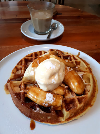 Read moreHeard this place is a good one for working, so tried to bring some stuff to do on Sunday afternoon. The interior is cozy and chic, only 1st floor is available (2nd floor only for special reservation). Since it was Sunday, a lot of people had brunch there. If you're looking for some quiet time, better not coming here on Sunday afternoon. I had the flat white and banana waffle. Their flat white is pretty decent, with Ethiopian beans that being recommended by the waiter. Tbh, I'm not a coffee person, but their flat white just hit the spot with the right amount of coffee (not too strong yet subtle). The waffle is superb, buttery and slightly crispy on the outside with a scoop of vanilla ice and caramel + coffee sauce drizzled on top of it. However, for some reason, the wifi did not working. Would recommend this if you're looking for a proper cup of coffee and just want to hang out...