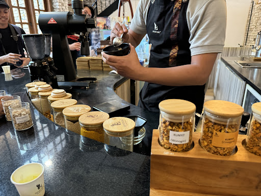 Tempatnya luas, nyaman dan bagus. Dengan interior yang masih mempertahankan keaslian gedungnya. Yang lebih menarik lagi, pelayan dan baristanya sangat ramah dan informatif. Sebelum kalian pesan menu jamunya pasti dijelaskan terlebih dulu tentang jamunya.