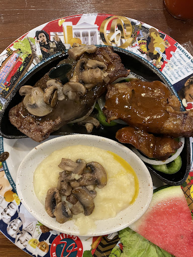 Read moreUntukku, American Grill ini seperti tempat dimana steak bertemu kehangatan. Tentu bukan karena tempat makannya yang hangat, karena AC disini tidak membuat gerah kok. Tempatnya sudah berbeda sejak pandemi Covid. Sekarang sudah tidak sebersih dulu. Mungkin karena gedung kecil ini hanya diisi oleh hotel dan restoran American Grill ini saja. Neon light khas Amerika masih menghiasi dekorasi restoran ini. Tidak ketinggalan patung Liberty menyambut Anda dengan tersenyum lebar di depan pintu restoran.