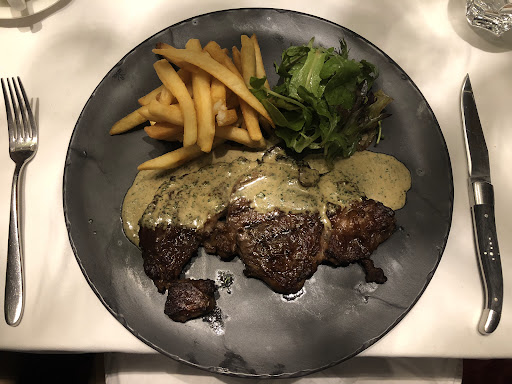 Le Steak Frites (7/10) Grilled black angus grain fed beef sirloin french fries, mesclun lettuce with marchand de vin sauce. Since itās sirloin cut, I expected the thick fatty layer on the sidesš¤§. Regardless of my preference for leaner cut, this was actually good, cooked perfectly to rare and quite easy to bite into while having sone meatiness to it.