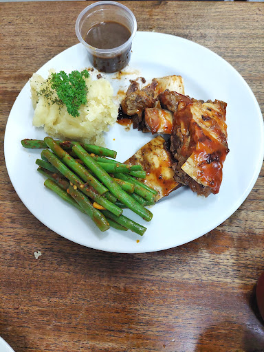 My favorite is tenderloin steak with potato wedges and black pepper sauce. For potato, you can choose mashed potato, wedges and french fries. For vegetables, you can choose mix, corn or peas. You also can request how they cook your steak. Try their pasta,...