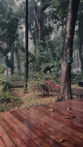 You cant be dropped off in front of the cafe, but otherwise you can enter through the ministry of forestry (kementrian kehutanan) and direct to the left. But as long as you walk towards the cafe, its like "in the middle of woods" cause it is sorrounded by the big trees, small bushes and flowers. Suddenly it raining, adding the scent of earth and its a bit chilling cause of the winds. Soulful. Would like to come back...