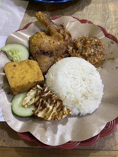 It is a franchised Indonesian-style crushed fried chicken eatery. They offer fried chicken dishes with rice and other common fried sides (tofu, tempe). Their specialty is the peanut-chili sauce that accompanies the sides. It is a mix of garlic, crushed ground nut, and chili pepper, doused with hot oil from the fryer. You can set the spiciness level to your preference.