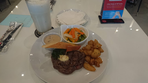 Read moreThis place was highly recommended by a friend. Upon entering, it feels like a simple decent cafe-style restaurant. I like their detailed menu with complete photos. Makes you wanna order so many. First order, burger with blue cheese, came in a timely manner. My daughter likes it. Then came their nacho supreme, which tasted decent (although too sweet and dominated by sauces instead of fresh tomato n herbs). Totally acceptable as appetizer. Then we waited for 30+ minutes for our nearly rp 1juta 1 kg medium-rare tomahawk steak. When the steak arrived, it looks odd and different than what was pictured in the menu. Our steak was medium-well cooked, and soaked in butter! I immediately called the waiter to inform him. His answer was simply, yes, u ordered medium rare. And hurriedly left me to the kitchen. I waited 5 mins … and nobody came to us. So not wanting to waste time, since another steak would probably took another 30 mins, we started to eat the steak. Evrything went down the hill soon enough. Most of it was chewy, tasted very buttery. Definitely overcooked. U barely tasted the meat. My husband had to order a sandwich in his disappointment. 30 mins later, as we paid, the waiter who got our complain about the steak never returned to our table. Off we left, knowing we will never ever come back...