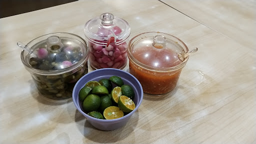 They provide many varieties of condiments, so you can adjust the taste your own: pickled shallots, green chillies, homemade chilli sauce, etc.