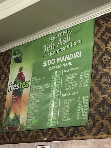 Bakso Sido Mandiri like many warung bakso that you can find in Indonesia. They only have 2 menus for food meatballs and chicken noodle. But you have many choice for beverage. Like coconut with many variant, milkshake, and juice. For the price average 3-6 dollar for 1-2 person. You also can ask for fat in your bakso or no. To access this warung bakso you can go by public transportation like angkot or online (apps) transportation like gojek, grab ,or uber. This warung don't have children chair, so if you bring your kids it's little bit hard for...