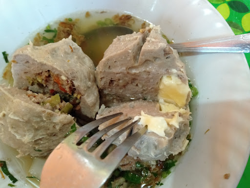 ย ย ย Read moreTersedia beragam pilihan bakso. Saya mencoba bakso mercon M. Memang untuk tingkat pedasnya, bagi saya tidak pedas. Tapi kalau penilaian secara keseluruhan, top markotop lah๐๐๐ Penyajiannya disertai potongan lemak dan urat yang wuuuiiihhh..membuat makin sedap (lupakan kolesterol sejenak๐). Baksonya sebesar bola tenis, kenyal tapi lembut, gak alot. Kuahnya juga gurih. Makannya bisa duduk di dalam yang lesehan atau di luar pakai meja kursi. Harganya memang agak mahal. Saya pesan bakso mercon M, tambahan 1 tahu isi bakso, kerupuk putih, dan air mineral, harganya 35 ribu. Tapi saya rasa sepadan dengan yang...