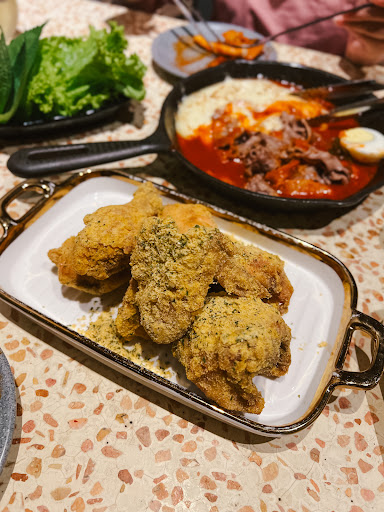 Read moreBamsae. Found this Chimaek (Korean restaurant) which is not only serving great quality and taste of food but also is great for socializing. We ordered Snowing chicken. The sweet cheese powder taste blends well with beer. 4.8 stars Yangnyeom chicken. The fried chicken is keeping its crisp (not soggy) despite being mixed with sweet and hot sauce. 4.8 stars Yangnyeom gejang. This is Korean delicacy (raw crabs marinated in sweet spicy sauce). Honestly I was having hard time to enjoy raw crab. It taste good actually. 4.2 stars Jjangmyeon. This is one of the best jjangmyeon in Jakarta. The black bean sauce is just right. The myeon is perfectly cooked. 4.9 stars Original Tteokbokki. It was abit hot but very nice. The fish cake and rice cake are perfectly cooked. 4.7 stars Maneul galbi sal. The beef is abit hard. It was served with wrapping veggie (ssam). Nothing special 4.0 stars Banchan is nice but with very limited variety. Free fried chicken skin when ordering bottle of beer. The service standard and atmosphere is acceptable, typical of Chimaek (i didnt expect 5 stars service in this kind of restaurant). My overall personal rating for this place is 4.7/5.0 stars. Highly recommended for having great foods while socializing (in formally) with friends. PS the signage of the restaurant is covered (mostly) by the parked cars in front of restaurant. You might miss it during busy hours or at night. The building has large Momo sign, reflexology business on...